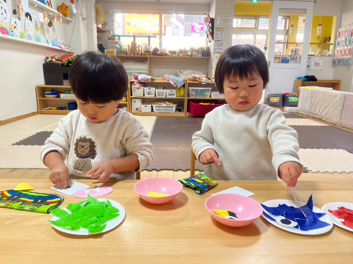 もうすぐ節分ですね。絵本や制作を通して節分を知り、子どもたちは「オニがでたぞ~」とオニになりきって遊びを楽しんでいますよ。 制作はオニのお面とオニのパンツ。 オニの髪をクレヨンでかきかき… オニのパンツでは絵の具でもようをつけました。...