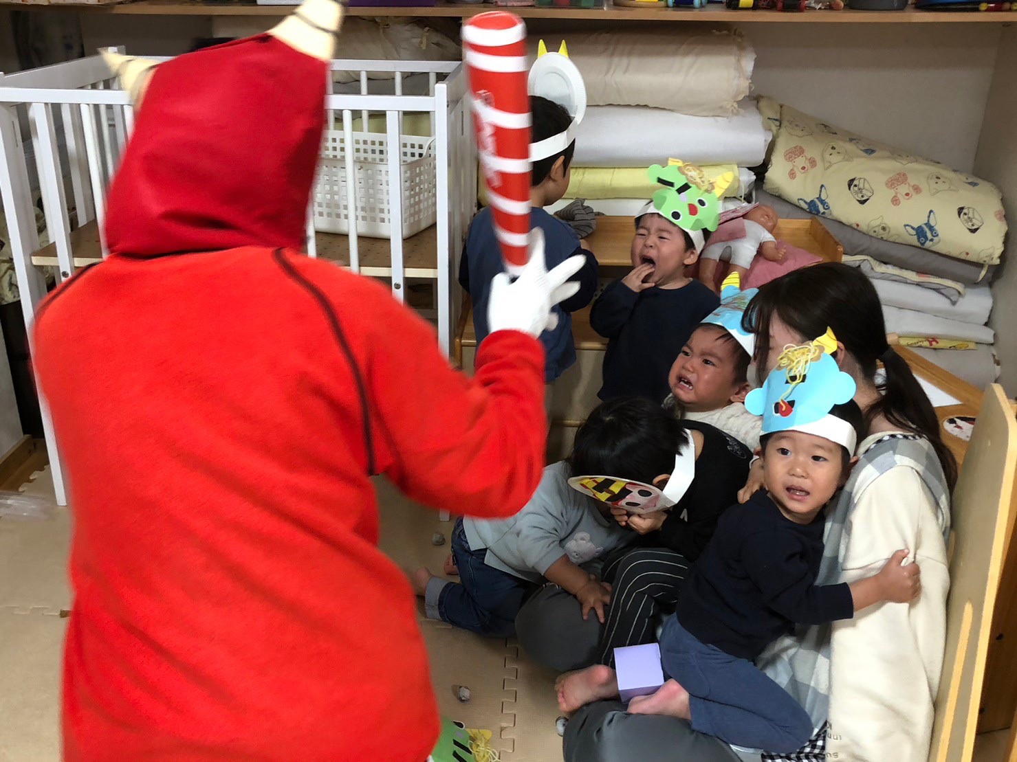 2月3日は節分の日です。 鬼のお面や鬼のパンツ、豆入れを作ったり、「鬼のパンツ」「豆まき」の歌や絵本に触れながら、節分ってどんな日? 鬼やお福さんってどんな人?怖いの?優しいの?と色々と想像が膨らむ子どもたち。 特にそらまめさんは「おにさん... -