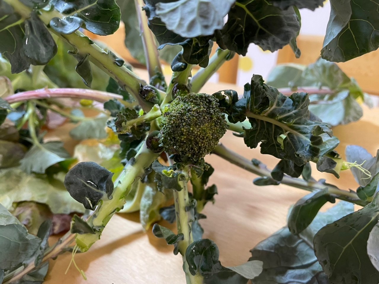 2月24日 あおむしさん、うずらさんは給食で使う玉ねぎの皮と、おやつで使うしめじを割いてくれました。 そらまめさんはブロッコリーの収穫とその日の給食のメニューのかぼちゃスープを作りました。 ちいさなブロッコリーを収穫! 子どもたちは興味...