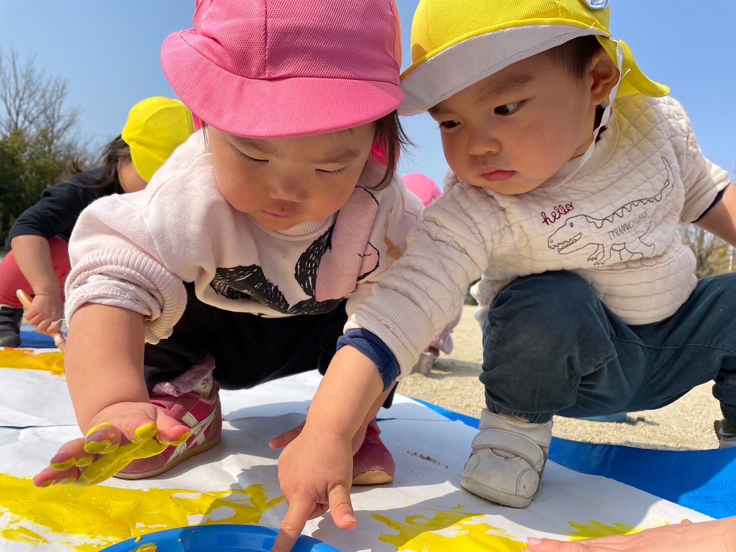 今日はみん里のお友だちと中央公園でおひさま製作。 どんな色があるのかな~ 何でぬるのかな~と真剣にお話しを聞いています。 あおむしくん、うずらちゃん達。 筆でぬったり、手に絵の具をぬって感触を楽しんでいます。 小さな手形がペタペタ… &nb... -