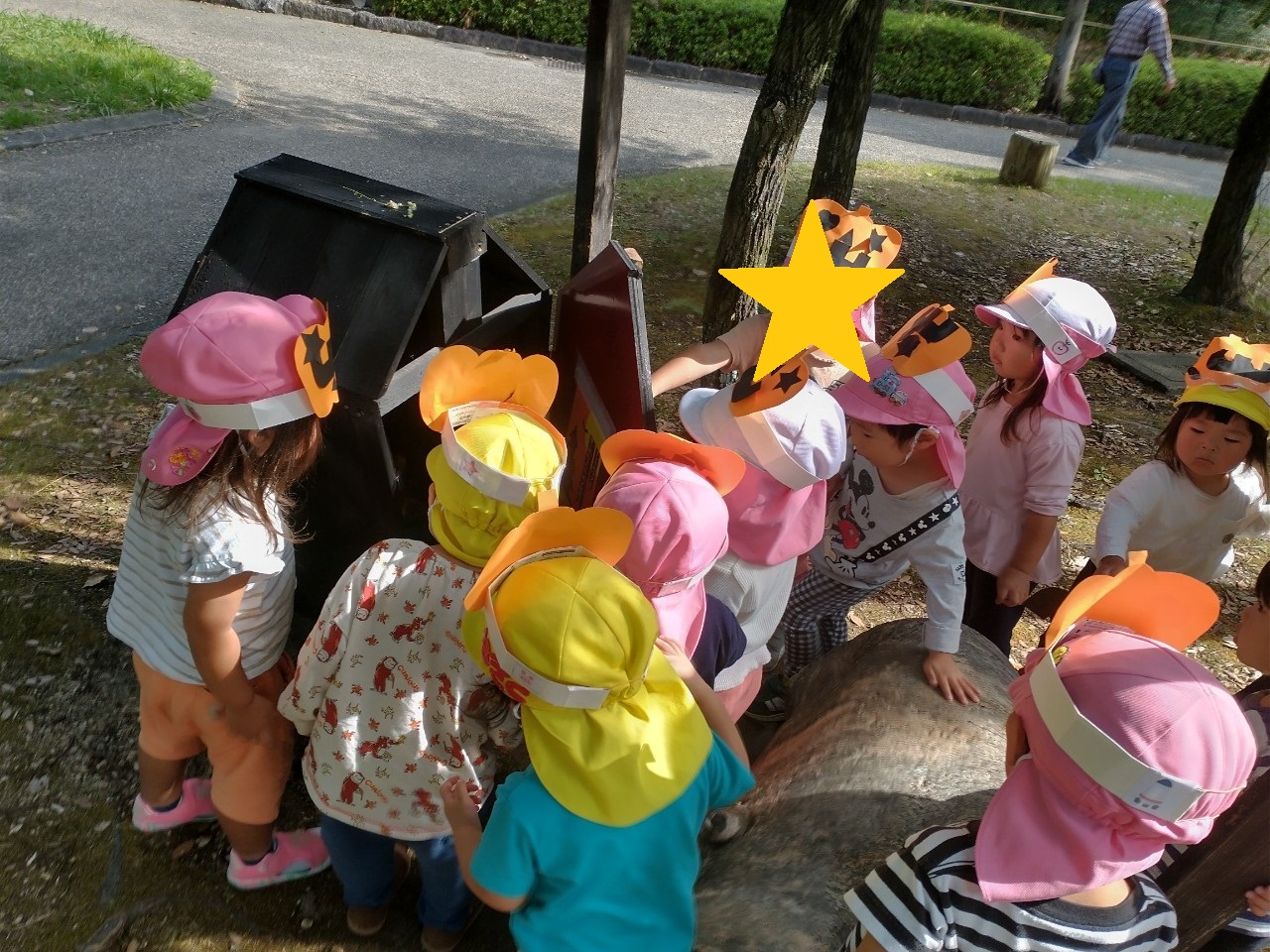 10月27日、市民の森にいきました。 この前は散策をたっぷり楽しんだので、 今日は遊具や木登りをたくさん楽しみました♪ 鐘をたたいて音の違いをみんなで確かめる様子や おみせやさんのコーナーで見立てあそびをする姿も。 &n... -