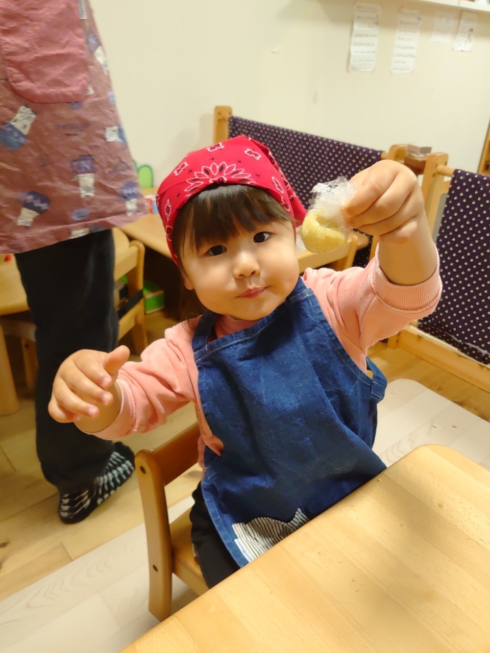 おやつで食べるいももちをみんなで作ったよ! ふかしたさつまいもをチャック付のふくろに入れてつぶしました。 指や手のひらを使ってつぶしたおいもを大きなお友だちが丸めて形を作ってくれました。 真剣な表情で丸めてます😊 できたよ~ いももちをぜんざ...