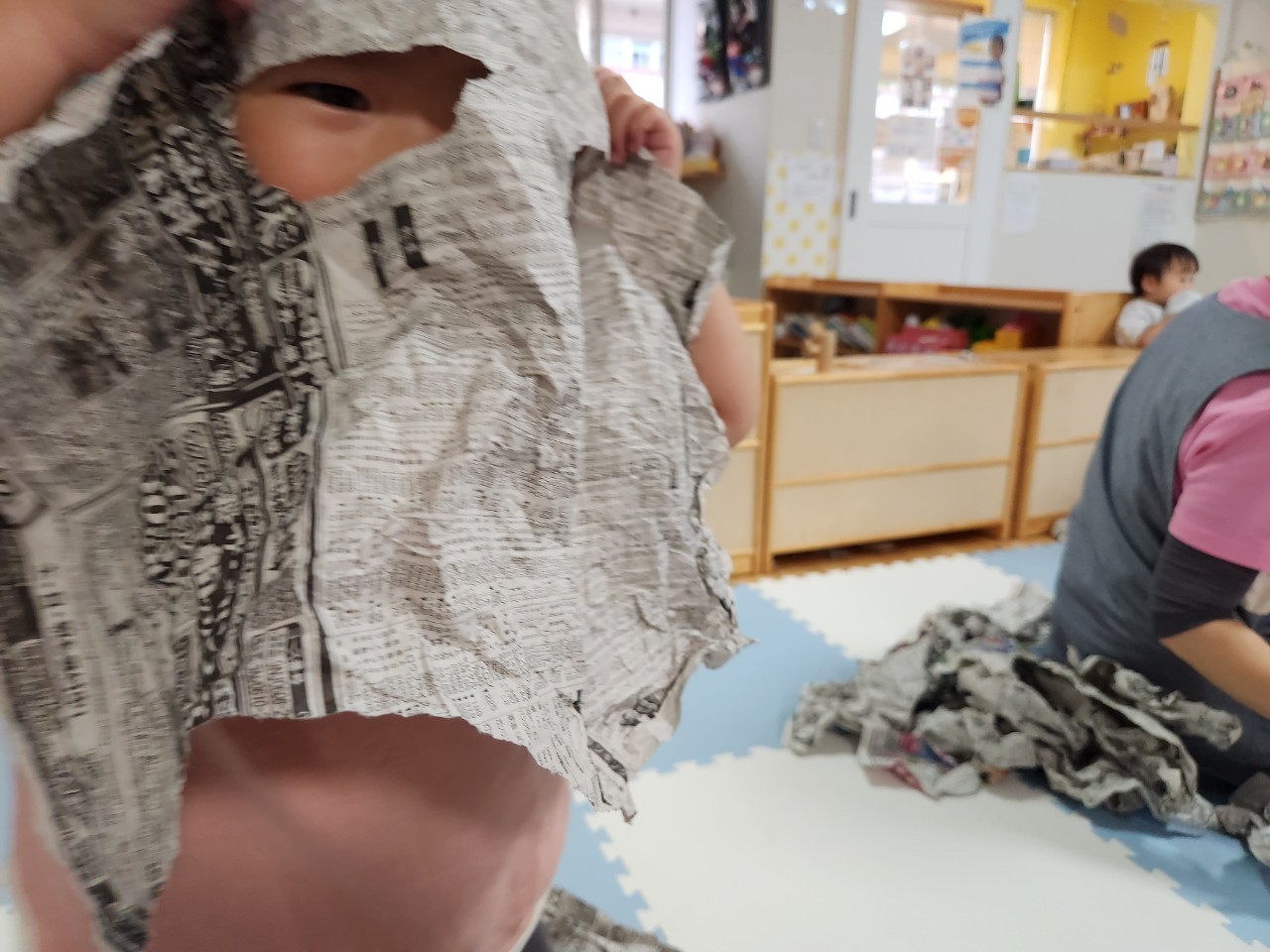 5 5月27日 朝から雨が降っていましたが、ぽこぽこほいくえんの中ではその雨に負けないくらいの子どもたちの楽しそうな声が響いていました。 そう!新聞紙あそびです!ちぎったり丸めたり、投げたり体に巻いてみたりと大はしゃぎです。 いっぱい... -