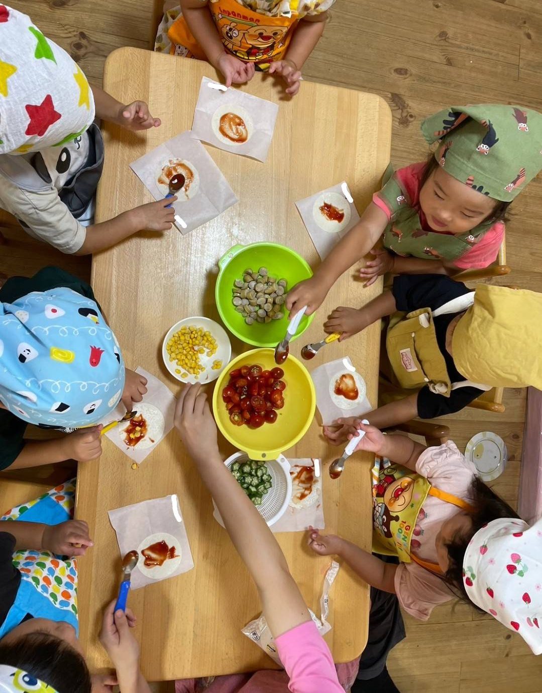 ぽこぽこの畑で取れたトマトやオクラを使って夏野菜のピザクッキングをしました♪ あおむし・うずらクラス あおむしくんたちはピザの食材に触れました。なんだろうと手を伸ばしたり思わずパクっと口に入れてみたり、興味津々な様子でしたよ :-) うずらちゃ... -