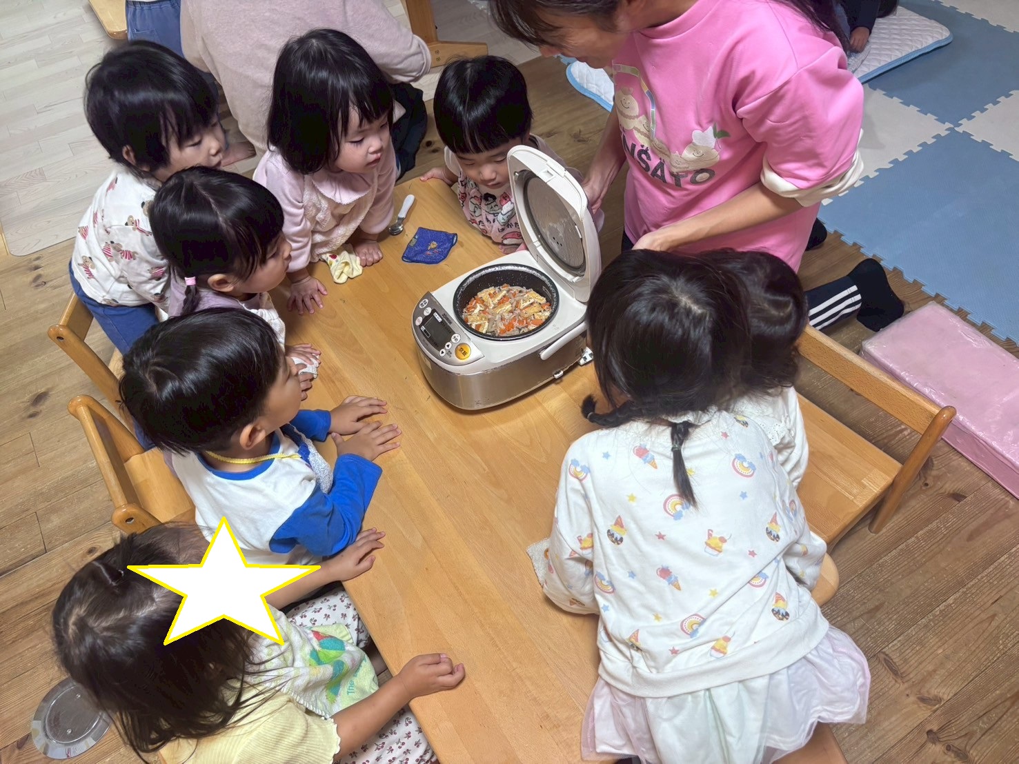 今日はクッキングを行いました。 あおむしくんはお野菜をちぎってくれました。 とっても一生懸命な顔が愛おしいですね😊 うずらちゃんは、型抜きに挑戦!!!! 指にギュッと力を入れて、とっても上手にできましたよ。 そらまめくんは包丁で具材を切ってく... -