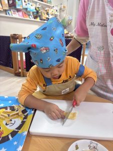 そらまめくんは包丁で具材を切ってくれました。