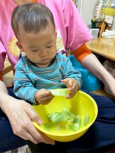 あおむしくんはお野菜をちぎってくれました。