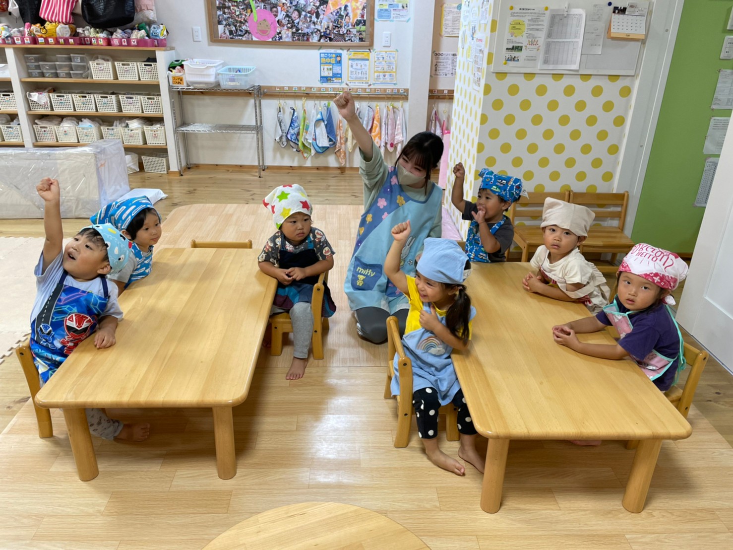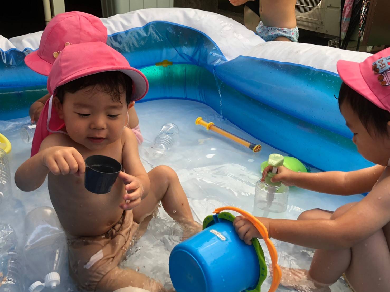 八月も終わりですが、まだまだ暑い日が続きますね。 暑い日は子どもたちの大好きな水あそび!どんどん水に慣れて、遊びも広がっていますよ。 あおむしくらす スポンジや水でっぽう、好きなおもちゃで楽しむあおむしくんたち。お友だちと一緒に遊ぶ... -
