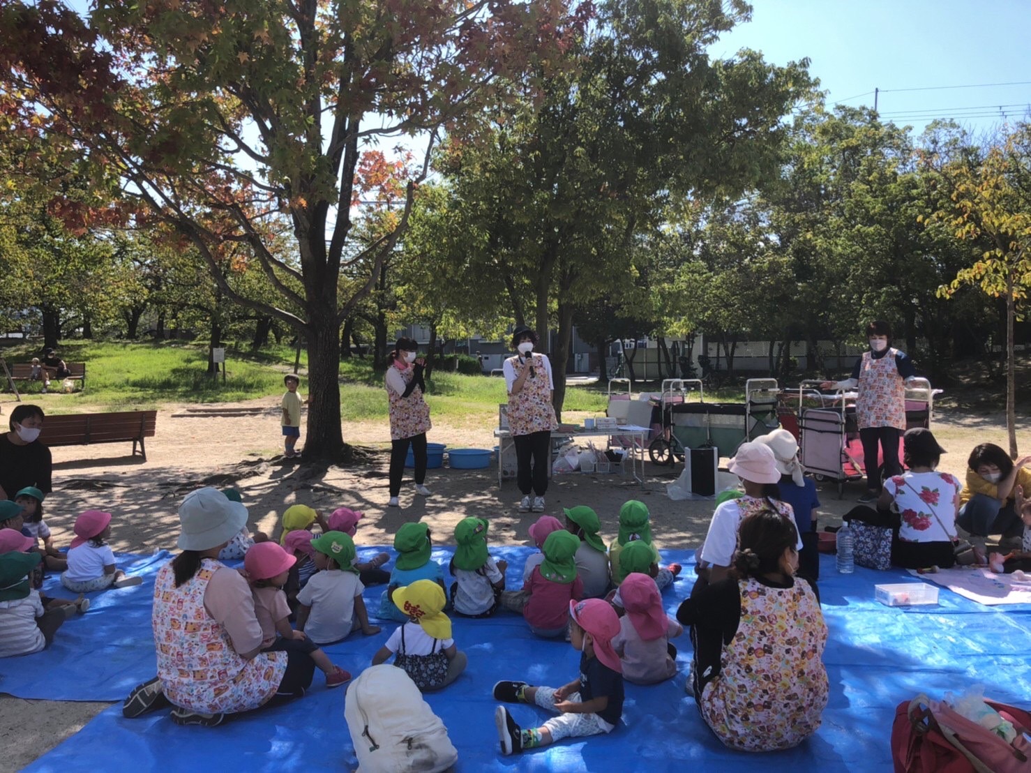 今週は保育参加です。 保護者の方に参加していただき 保育園で過ごす姿を見てもらいました。 どんぐりバック制作では、ジップロックにシール貼りを♪ とても真剣な子どもたちです。 どんぐりバックを持って、秋の宝探し... -