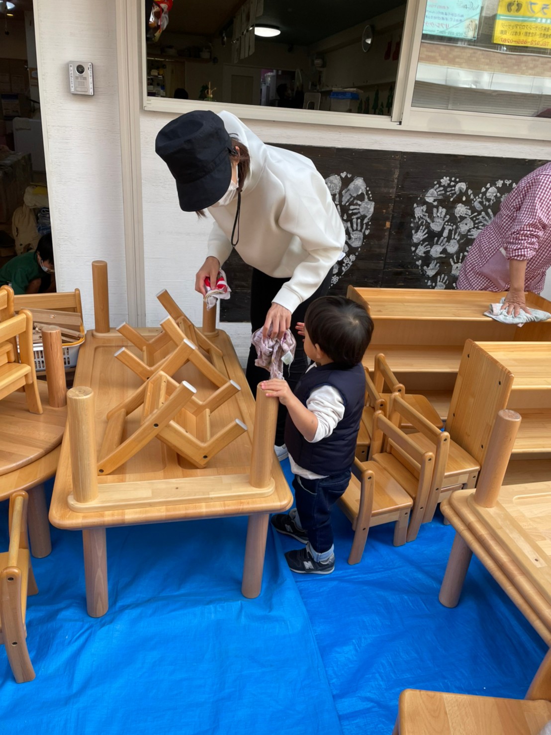 12月11日 大掃除をしました。 子どもたちも真剣な顔で掃除していましたよ…! 最後はお部屋の中を小学生の子たちが雑巾がけしてくれました。 -