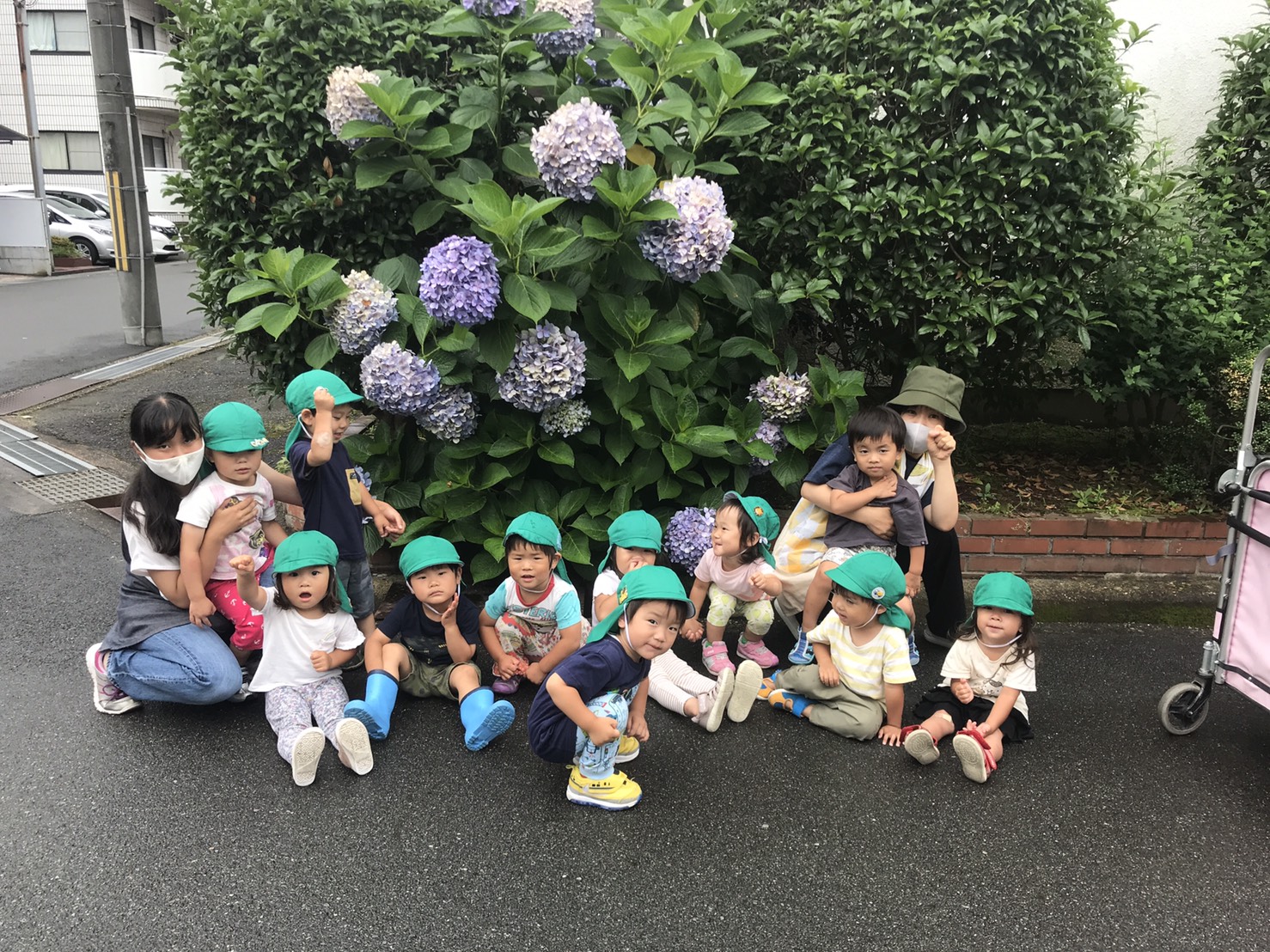 7月1日 あおむしくん・うずらちゃんと、そらまめさんそれぞれであじさいを見てきました。 -