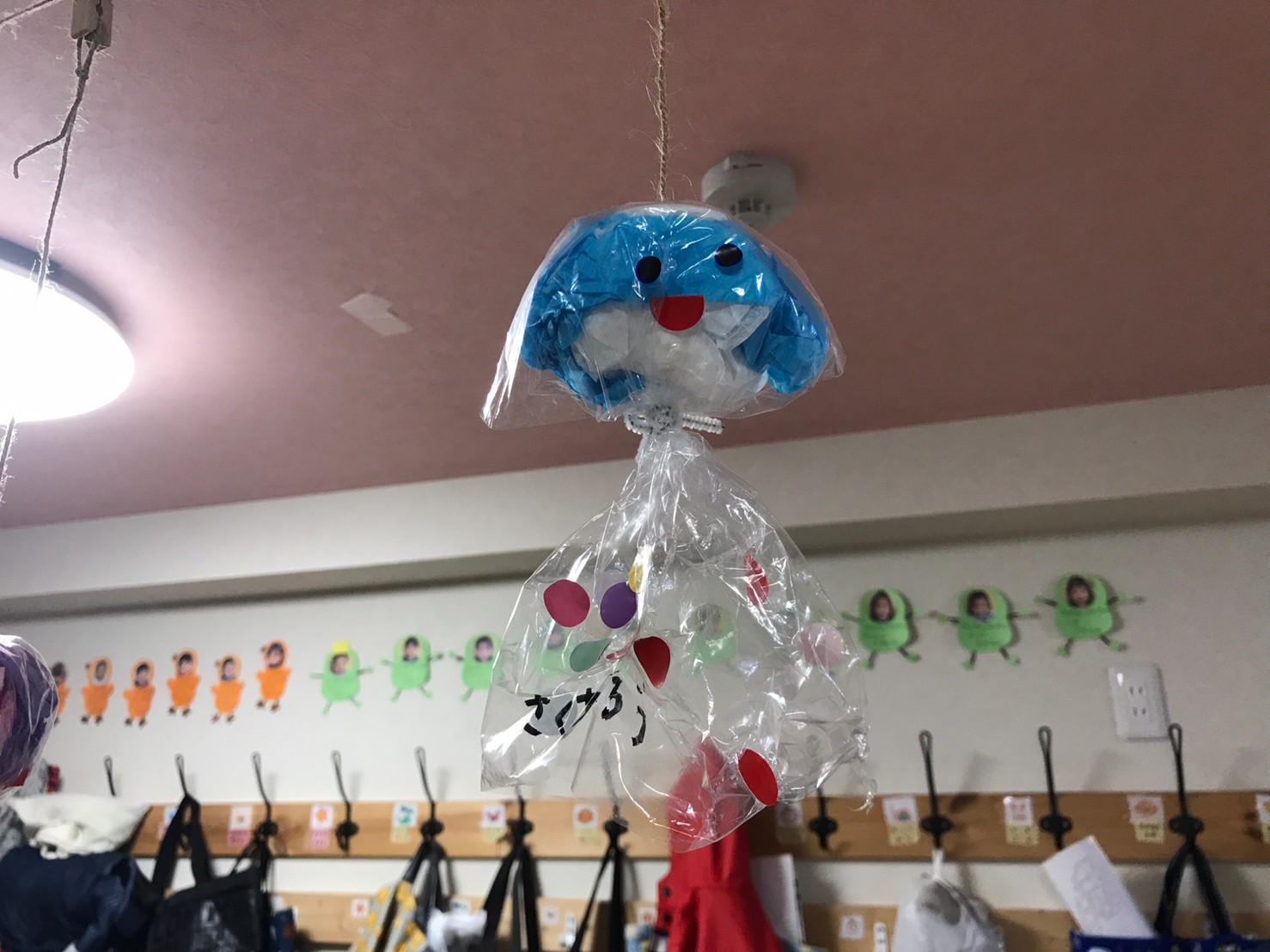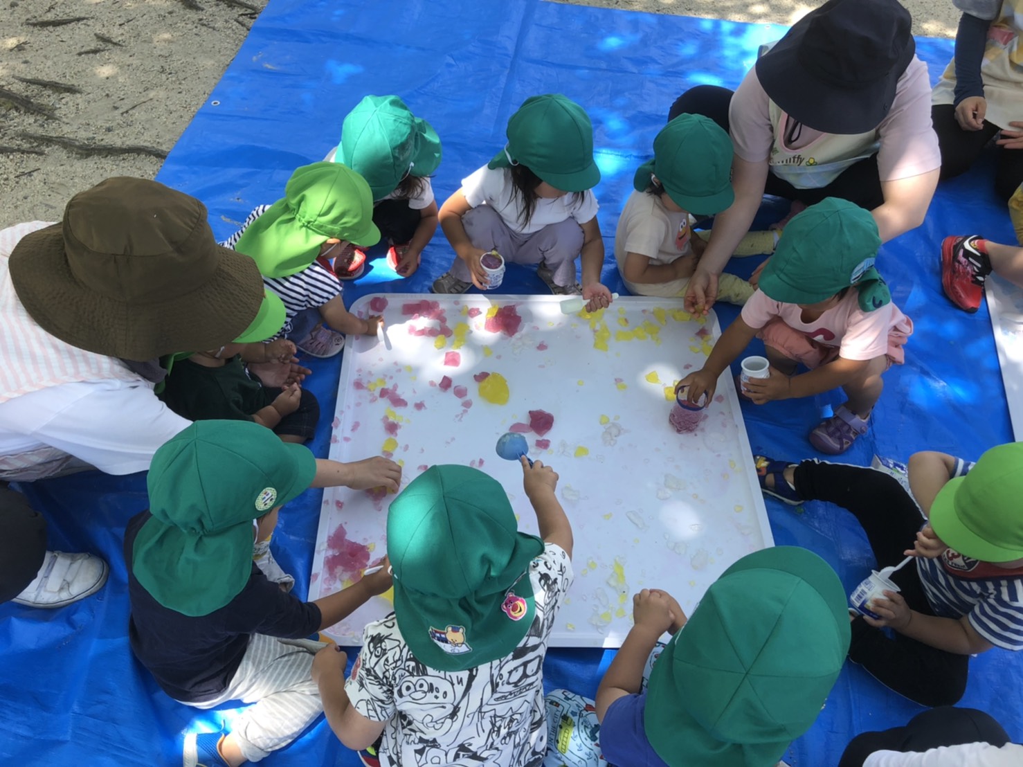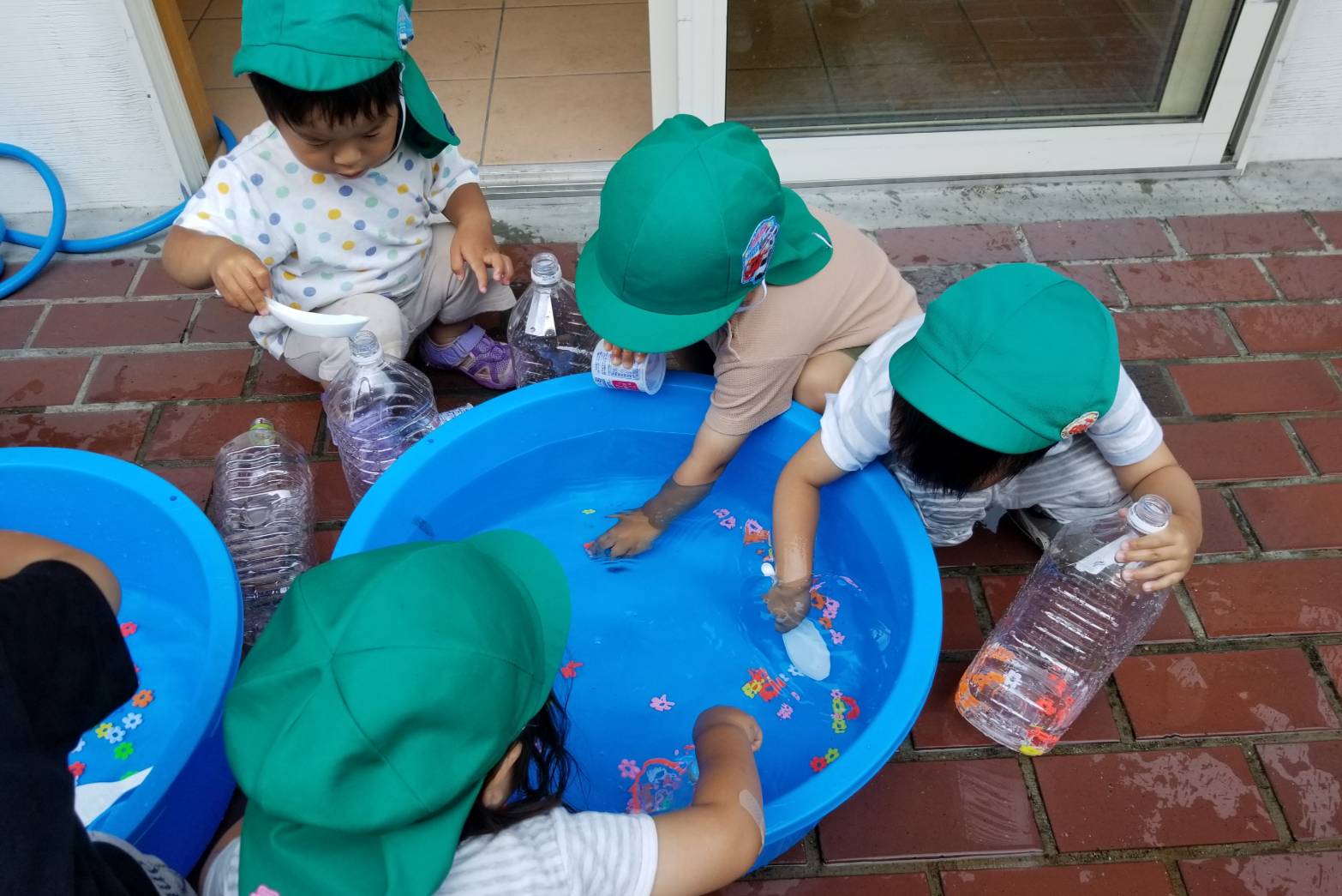 6月10日 水遊び楽しいね…!! お花のはじきをペットボトルのカゴに集めたり、 お魚を釣ってみたりしました。 -