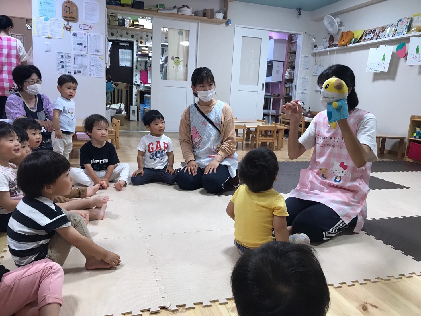 今日はこどもの日の集いをしました。 紙芝居を見ながら、どうしてこいのぼりを飾るようになったのか、お話しを聞いています。鯉が滝を上がると竜になる…と竜の絵がでてくると、子ども達はびっくり! 少し難しいお話しも真剣に聞いて、ころころ変わる表情…... -