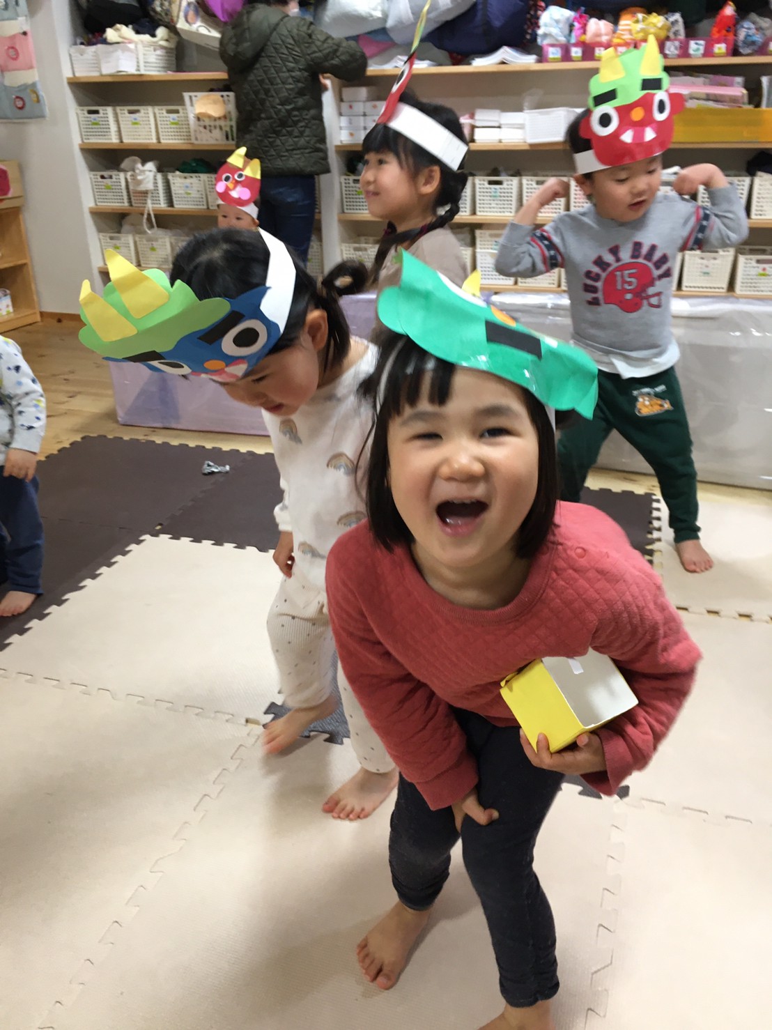 今日はおひさまひろばの節分の集いに参加しました。 地域の親子、お友だちと豆まきを楽しんできましたよ~♪ 節分の由来を聞いたり、おにが出てくるパネルシアターをみんなで楽しみました。 豆ます作りでは、おめめ?おくち?と貼る場所を保育者に確認しな... -