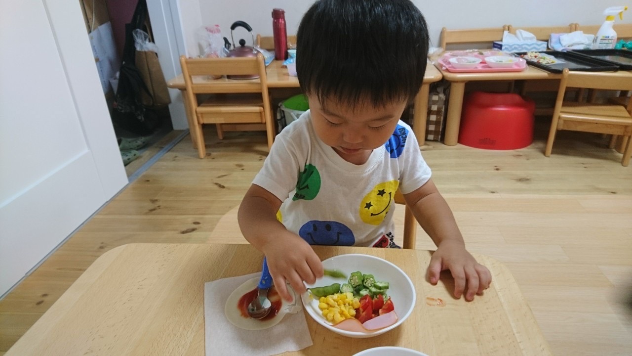 収穫した夏野菜でクッキングをしました。 野菜を収穫し、材料を買いにスーパーへ行ったり当日までの行程をとても楽しみにしていた子ども達。 朝からエプロンもってきたよ~と伝えてくれたりクッキングを楽しみにする姿が見られましたよ! ソーシャルディス... -