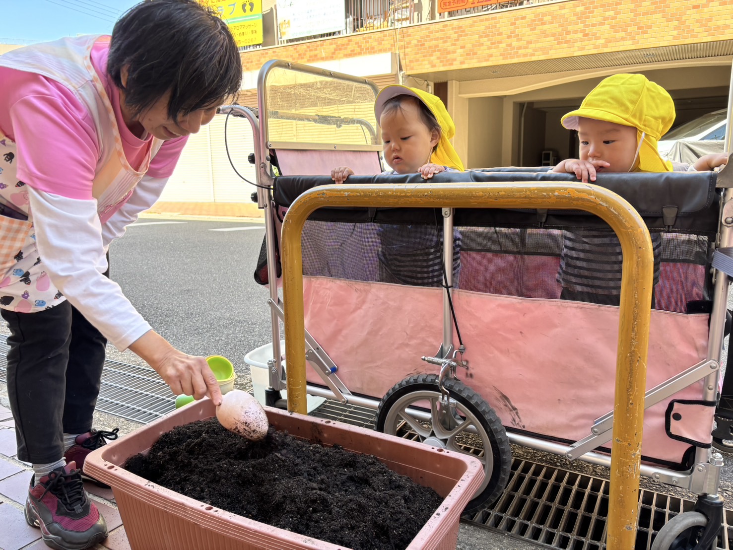 新年度がはじまり、22日が経過しました ☺ 子どもたちも新しいお友達や先生に慣れ笑顔が増えました♡ 新しいお友達も保育園生活に慣れとっても元気いっぱいです☺☺ 朝から、さといもを植えるために土に栄養を入れました。虫が出てきても子ど...